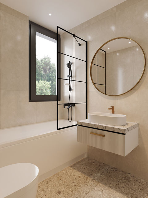Pensée pour le confort quotidien, la salle de bain de l’étage offre l’équilibre parfait entre élégance et fonctionnalité. Douche moderne, baignoire confortable, finitions soignées : c’est un espace conçu pour se détendre et profiter pleinement de son chez-soi.